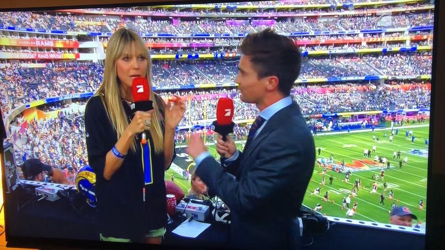 Heidi Klum hat sich ihren ProSieben-Auftritt beim Super Bowl wohl anders vorgestellt.Bild: ProSieben-Screenshot